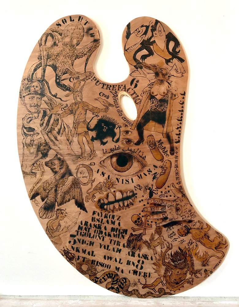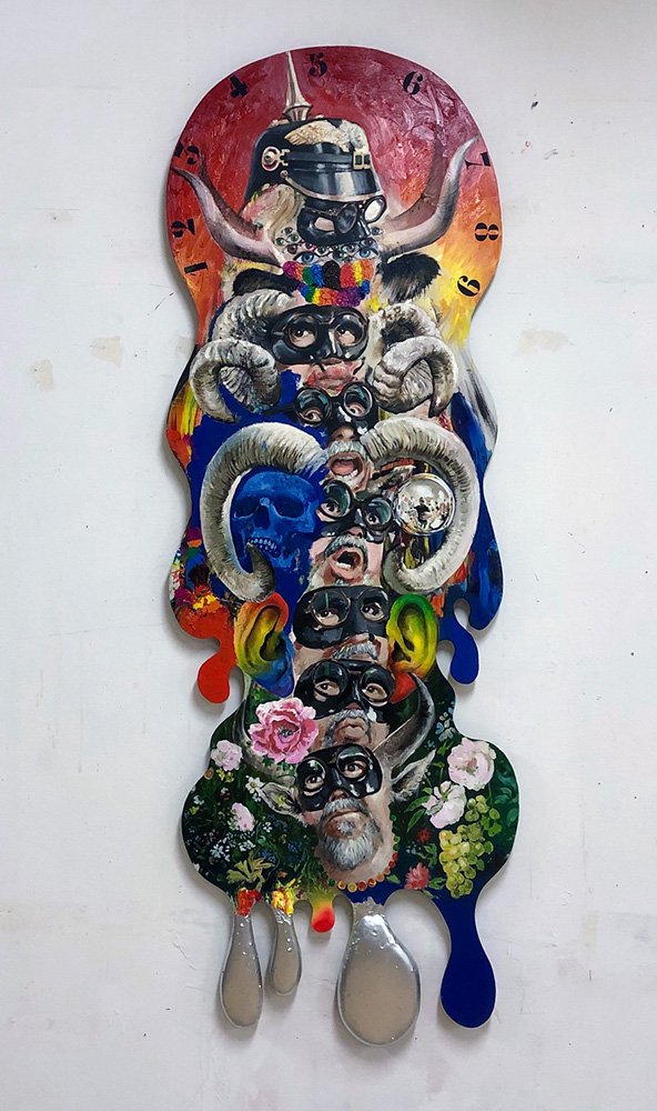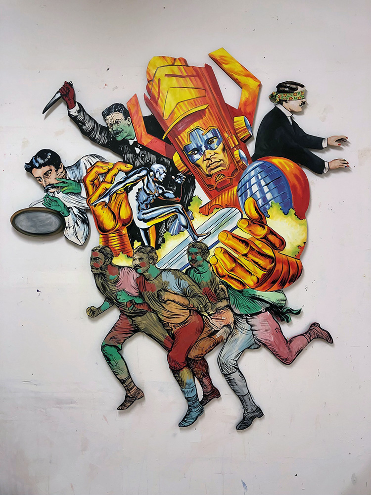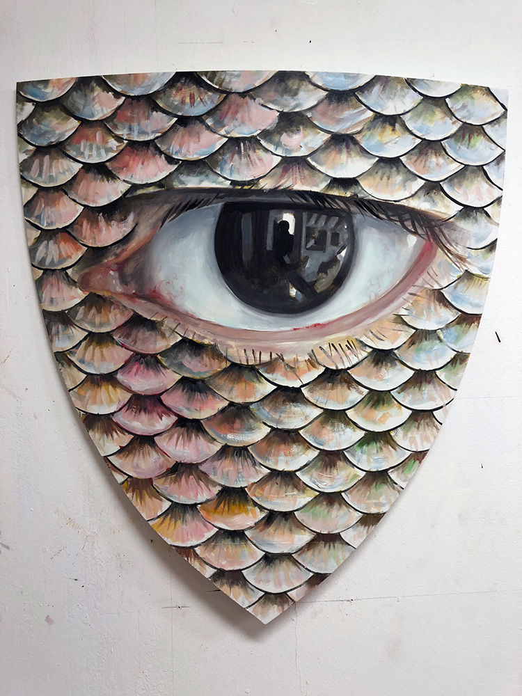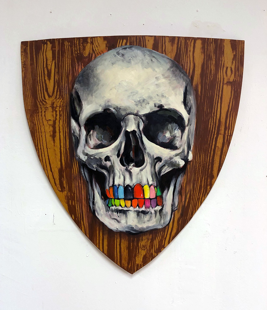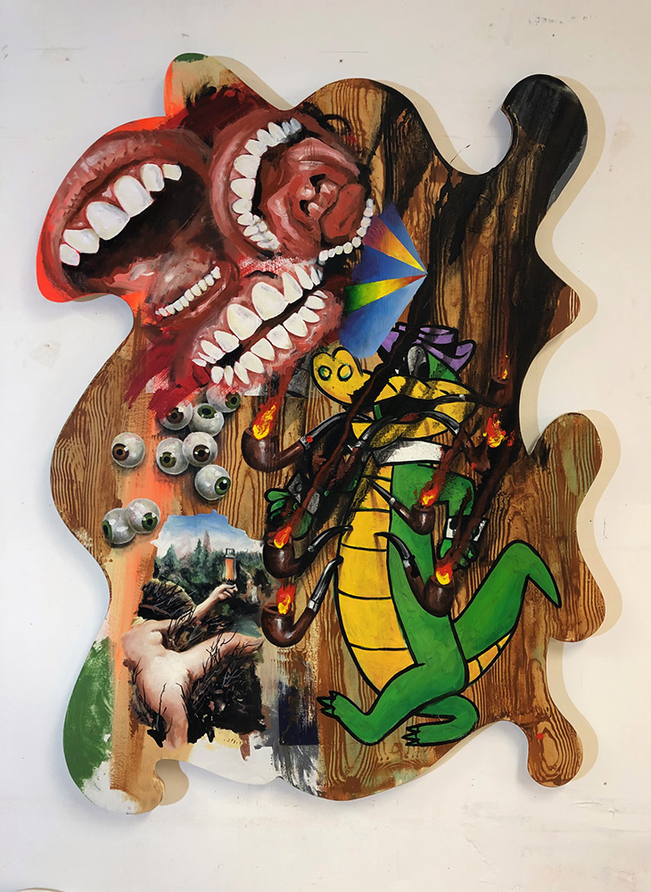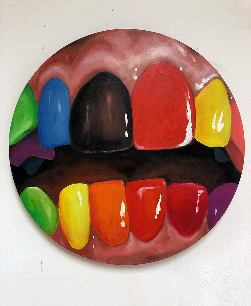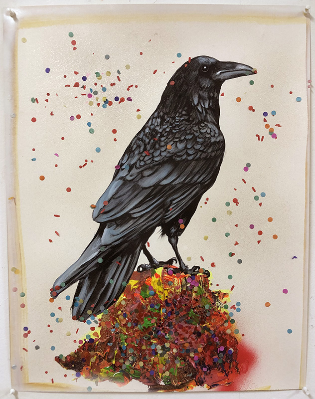 Acrylique, paillettes et confettis sur papier, 61x55 cm |